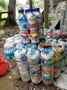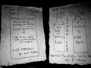 Im zweiten Step wollten wir den Indonesiern vor Ort die Möglichkeit geben, ihren Plastikmüll an uns zu verkaufen. Wir machen aus dem Plastikmüll nämlich Ekobricks (siehe Foto), um dann daraus ein Ekohostel zu bauen, im Einklang mit der Natur.